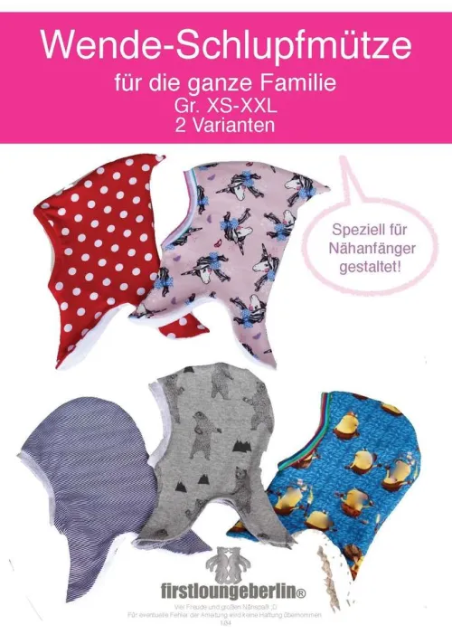 Mehrgrößenschnitt inklusive 6 Größen von XS-XXL Kopfumfang von 36 bis 60 cm. Inklusive Größentabelle und Stofftabelle Verwendete Materialien: Fleece, Jersey-, Baumwollmischgewebe, Wolle, Wollfilz, Nickie, Strick, Fell, Viskose/Elasthan, Microfaserjersey. Alles was kuschelig und dehnbar ist.