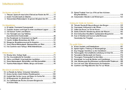 Berge und Meer, Wälder und Wüste, Seen und Wasserfälle – kaum ein Land Afrikas hat eine solche landschaftliche Vielfalt zu bieten wie Marokko. Aktiven Reisenden sind keine Grenzen gesetzt: Skitouren und Bergsteigen auf 4000er-Gipfeln, Surfen in den Atlantikwellen, Kameltouren in der Sandwüste, Mountainbiken auf einsamen Tracks, Offroad-Touren auf abenteuerlichen Pisten. Auch die Kultur des Landes ist einzigartig : Stadtpaläste, Koranschulen und Moscheen mit Mosaiken und Stuckornamenten zeigen maurische Architektur in Vollendung, im Norden ist das Stadtbild teilweise andalusisch geprägt, südlich des Hohen Atlas überwiegt Berberarchitektur mit mächtigen Lehmburgen, im Anti-Atlas thronen Speicherburgen aus Stein auf den Hügeln. Jahrtausende alte Felsgravuren zeugen von der frühen Besiedelung des Sahara-Randgebiets. Dieses Buch liefert Ideen für neugierige Reisende, die Ziele entdecken möchten, die nicht in jedem Reiseprogramm oder Katalog stehen. Die 40 Highlights geben Anregungen, die Natur, Kultur und Kulinarik Marokkos intensiv und abseits der großen Touristenströme zu erleben.