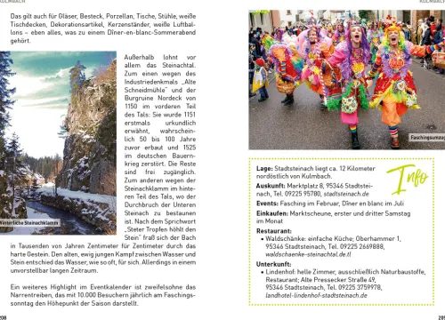 Oberfranken steht ein wenig im Schatten von Unter- und Mittelfranken, bietet aber mit Weltkultur und Mittelalterburgen, Bergen und Wäldern, Bier und Bratwürsten wunderbare Anreize für eine Reise. Es gibt neben dem berühmten Bamberg eben auch Coburg, Kulmbach oder Kronach. Neben der fantastischen Fränkischen Schweiz auch den Frankenwald, Steigerwald und das Fichtelgebirge. Und neben dem bayerischen Staatsbad Bad Steben auch Bad Alexandersbad, Bad Berneck oder Bad Staffelstein. Allein: Die Wenigsten in Deutschland wissen das. Der Autor führt in das Fachwerkhaus, in dem der Vater aller Blue Jeans geboren wurde, zu dem Ort, wo die größten Schneemänner gebaut werden, es geht nach Little Berlin und ins erste Archedorf in Bayern. In Bayreuth ist er auf den Spuren von Richard Wagner, er geht dem Hinweis „Nach Adam Riese“ nach und bestellt eine Wurst beim Hofer Wärschtlamo. So entstand ein rundes Gesamtbild von Oberfranken mit seinen vielen schönen und bezahlbaren Familienbetrieben, ob in Hotellerie oder Gastronomie. Der Gast darf sich auf eine herzhaft- bodenständige Küche freuen. Die Tipps dazu sind handverlesen. 50 Ziele in Oberfranken und noch mehr Erlebnisse: Lassen Sie sich überraschen von diesem so schönen und häufig noch unbekannten Oberfranken, das für jeden recht nah liegt: nämlich in der Mitte von Deutschland.