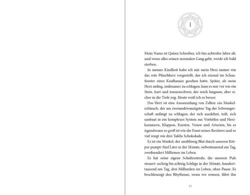 Quinn wird sterben. Denn ihr Spenderherz hält nicht mehr lange durch. Um den Tod besser zu verstehen, studiert sie Medizin an einer Eliteuniversität. Doch da wird der Rektor getötet, kurz darauf stirbt eine Studentin – und niemand anderes als ihr Bruder gerät unter Verdacht. Quinn muss herausfinden, was wirklich passiert ist. Und dabei kommt sie einem Geheimnis auf die Spur, das nicht nur ihre eigene Welt auf den Kopf stellen könnte . . .