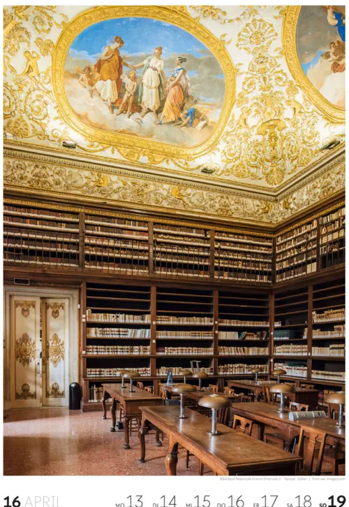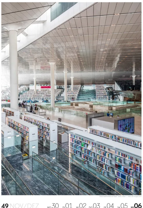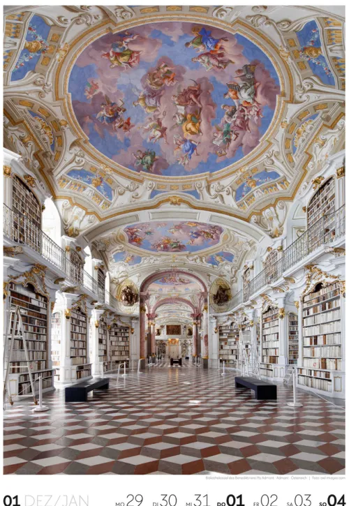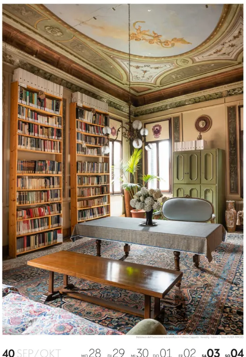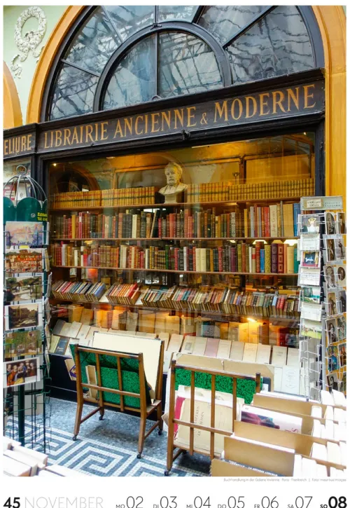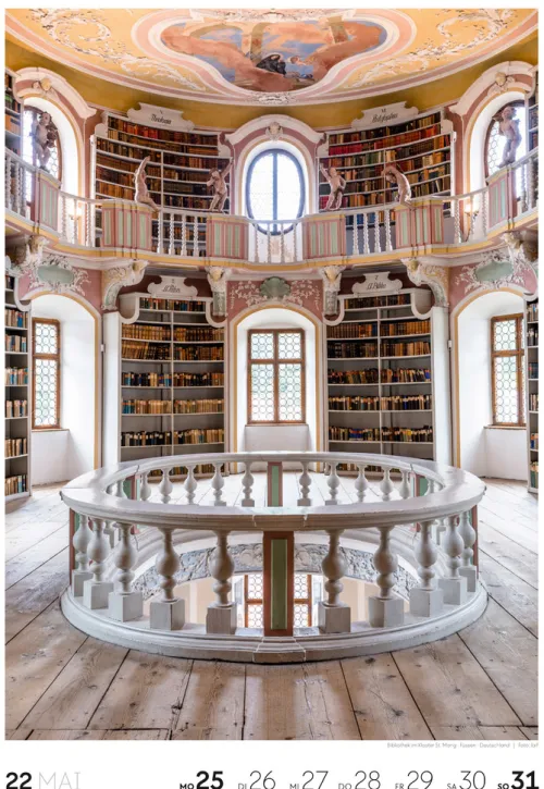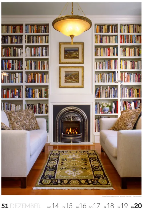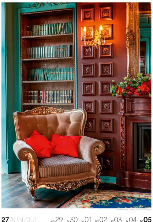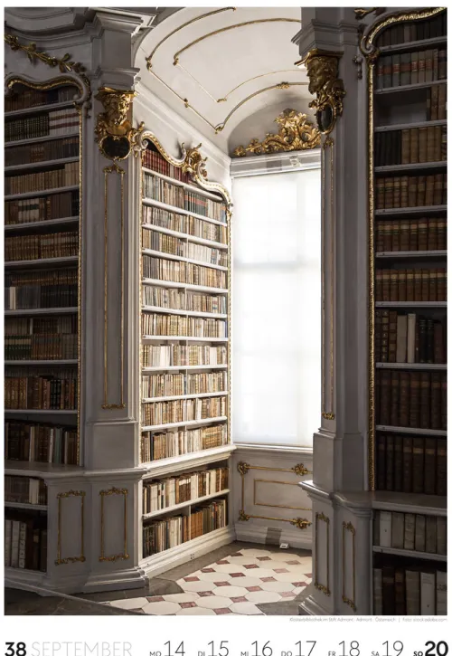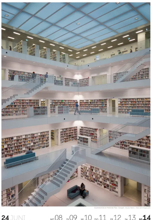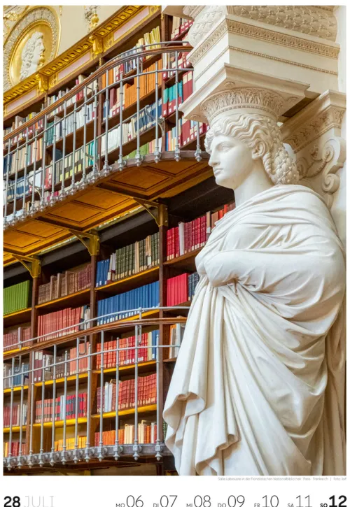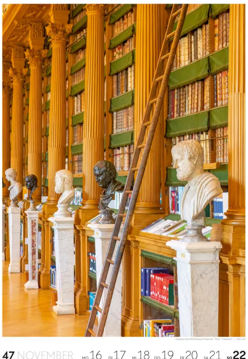 Für Buchfans und Leseratten: Dieser Wochenkalender setzt die Magie des Lesens eindrucksvoll in Szene – mal prunkvoll, mal modern, mal gemütlich oder schlicht beeindruckend. Die klare Bildkomposition fängt die Ästhetik von Lesesälen, Bibliotheken und Buchhandlungen auf einzigartige Weise ein und strahlt dabei stets die Liebe zu Wort, Buch und Wissen aus. Jede Kalenderwoche erzählt eine neue Geschichte rund um die Welt der Bücher. Ideal für alle, die sich von der Schönheit der Bücher inspirieren lassen möchten.