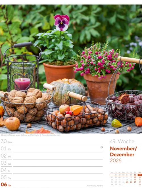 - Wochenkalender mit 53 opulenten Gartenbildern, abgestimmt auf die Jahreszeiten