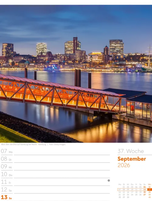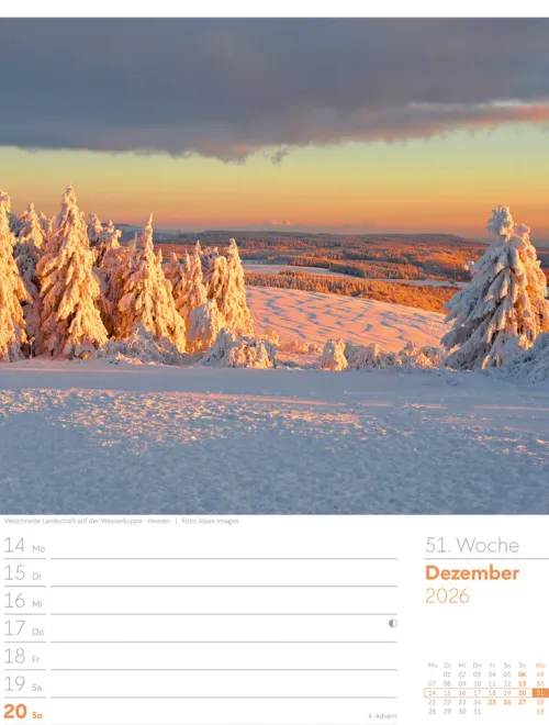 - Wochenkalender mit 53 malerischen Aufnahmen von deutschen Sehenswürdigkeiten und Naturlandschaften
