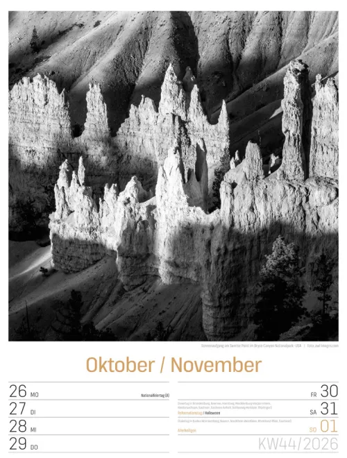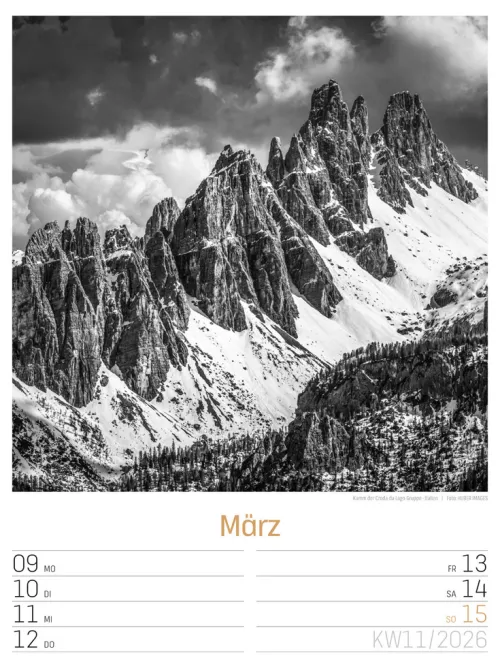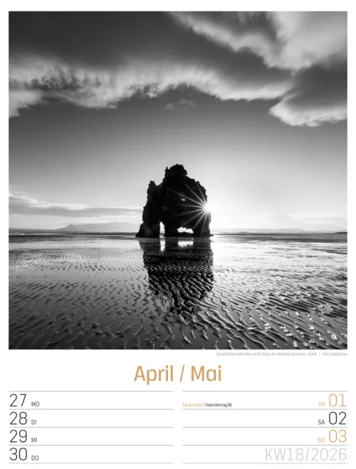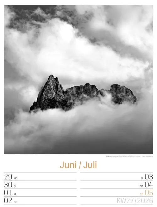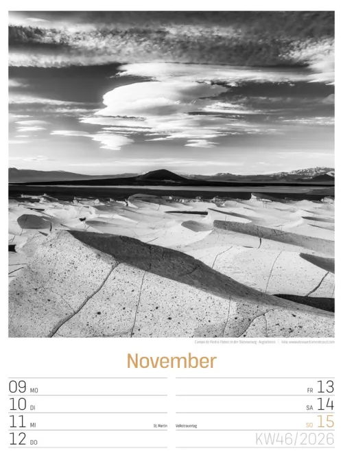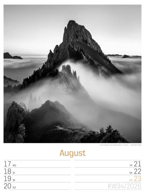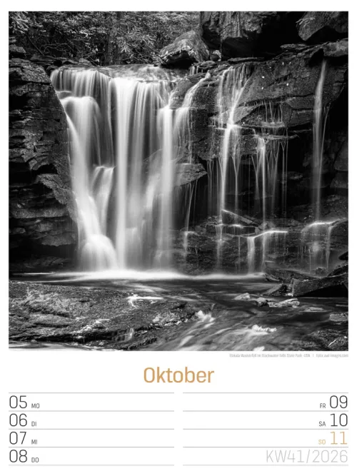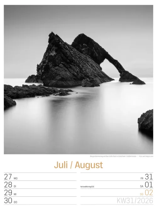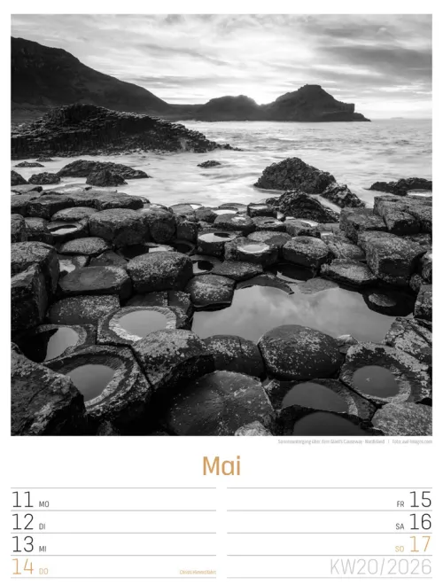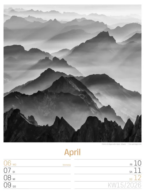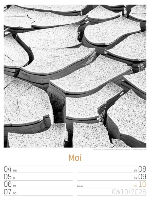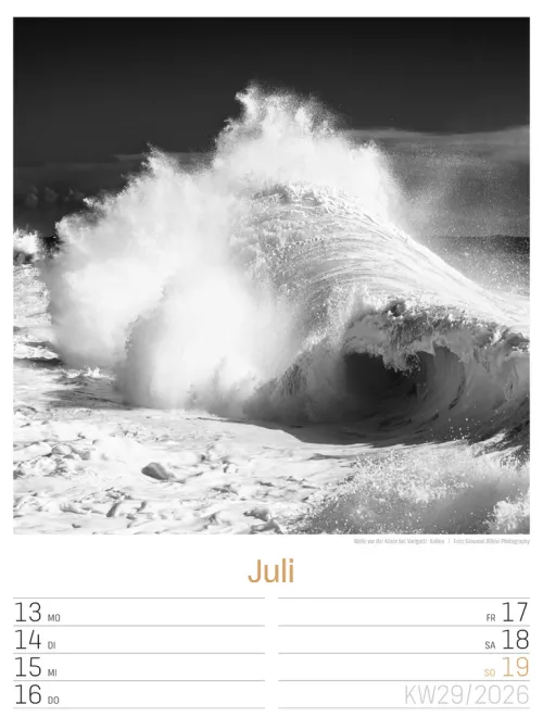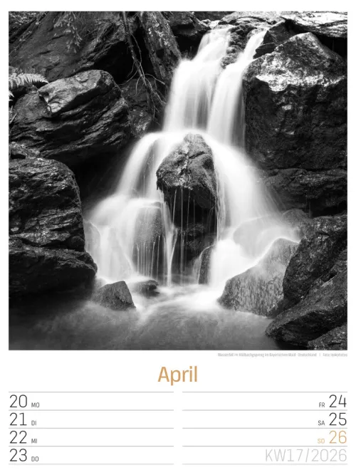 - Wochenkalender mit 53 reduzierten Schwarz-Weiß-Aufnahmen von Landschaft und Natur