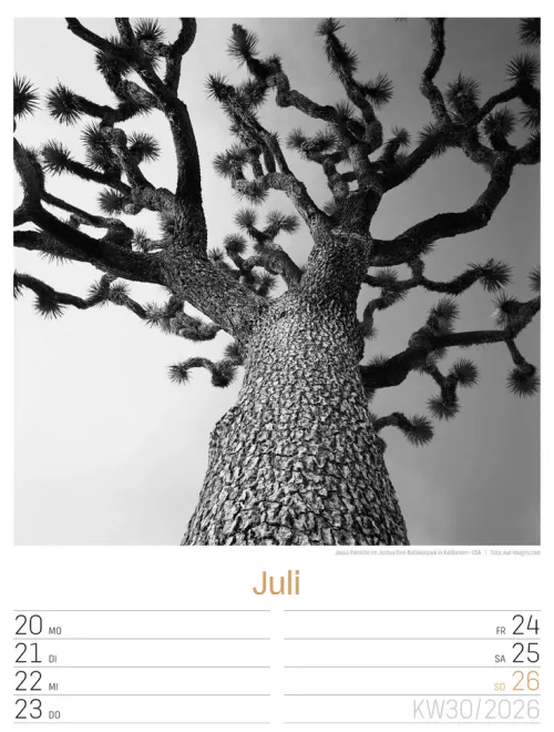 Tauchen Sie ein in die stille Poesie der Natur mit unserem Wochenkalender „Silent Nature“. In präzise komponierten Naturaufnahmen präsentiert der Kalender die zeitlose Eleganz der Schwarz-Weiß-Fotografie und fängt die essentielle Schönheit stiller Landschaften weltweit ein. Jeder Blick in den Kalender ist eine meditative Reise zu den Seelenorten der Erde. Finden Sie Ruhe in den kontemplativen Szenen, die die Natur in ihrer unberührten Form darstellen – ein visueller Rückzugsort für Ihr Zuhause. „Silent Nature“ ist ein Fenster zu einer Welt der Stille und Tiefe, ein treuer Begleiter für alle, die das Spirituelle im Alltäglichen suchen. Übersichtliches Kalendarium mit Platz für Ihre Einträge und dazu jede Woche neuer Rätselspaß: Kreuzworträtsel und Sudokus auf allen Rückseiten.
