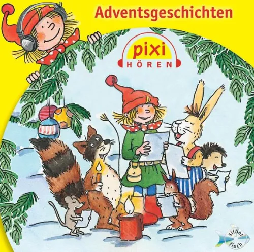 5 Geschichten zum Hören in der Adventszeit: Vincent und Aurora auf dem Weihnachtsmarkt; Die Weihnachtsgeschichte; Leo und Leander backen Plätzchen; Jan+Leo bauen einen Schneemann; Pixi feiert Weihnachten