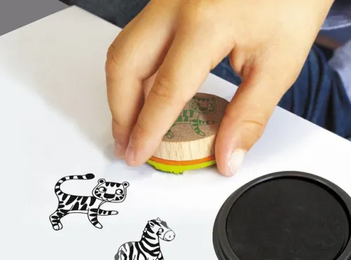 Umweltfreundliche Stempelsets für Kinder ab 3 Jahren. Die FSC zertifizierten Holzstempel in einer hochwertigen Kartonbox. Inhalt: 8 Holzstempel ø 4 cm und ein Stempelkissen mit abwaschbarer Tinte.
