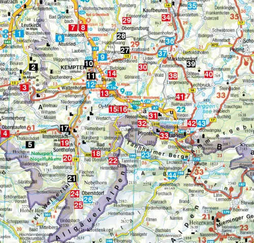 44 Tourenkärtchen im Maßstab 1:75.000 bis 1:150.000 sowie zwei Übersichtskarten im Maßstab 1:500.000