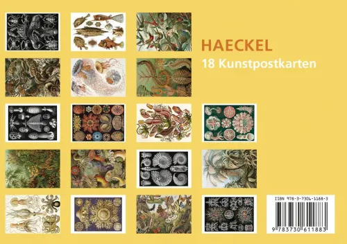 Der Arzt, Zoologe und Künstler Ernst Haeckel vereinte im 19. Jahrhundert Kunst und Wissenschaft auf eine einzigartige Art und Weise. In seinem Hauptwerk ‚Kunstformen der Natur‘ (1899-1904) stellte er Quallen in eindrucksvoller Schönheit und Einzeller in vollkommener Symmetrie dar. »Die Natur erzeugt in ihrem Schoße eine unerschöpfliche Fülle von wunderbaren Gestalten, durch deren Schönheit und Mannigfaltigkeit alle vom Menschen geschaffenen Kunstformen weitaus übertroffen werden«, schreibt er in seinem Vorwort. Haeckels Bildtafeln beeinflussten die Kunst des Jugendstils und inspirierten Architekten und Kunsthandwerker des beginnenden 20. Jahrhunderts. Dieses Set enthält 18 Postkarten mit Motiven von Ernst Haeckel zum Heraustrennen!