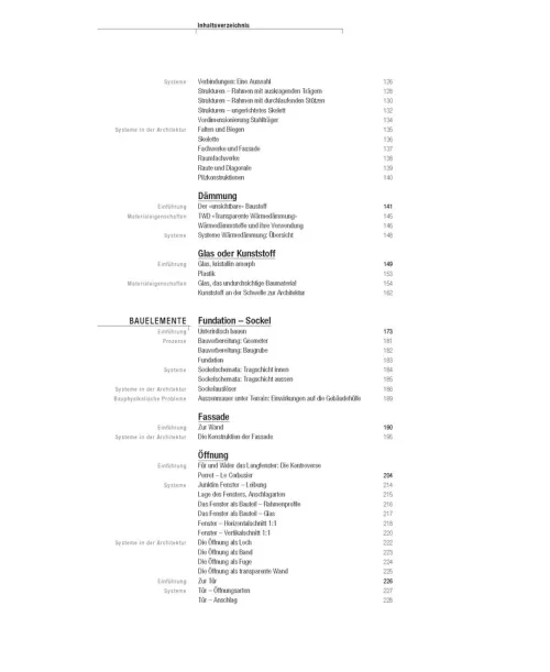 Systematisch gegliedert und didaktisch aufbereitet, vermittelt das Buch auch weiterhin in einem Band das nötige technische und konstruktive Grundlagenwissen, um vielfältige Entwurfsziele baulich umzusetzen. Es hat sich deshalb in über 20 Jahren nicht nur bei Studierenden und Dozierenden, sondern auch bei Architektinnen und Architekten zu einem unverzichtbaren Handbuch zum Nachschlagen und Vertiefen etabliert.