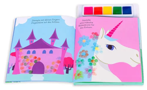 Das Einhorn-Kreativset enthält zudem eine leicht verständliche Anleitung mit Bildern, in der alle wichtigen Stempelformen erklärt werden.