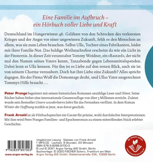 Die Vorgeschichte zum Bestseller und ARD-TV-Erfolg “ Unsere wunderbaren Jahre“ . Peter Prange ist der Erzähler deutscher Geschichte. Mit diesem Roman schlägt er die Brücke von der Kriegs- zur Wirtschaftswunderzeit.