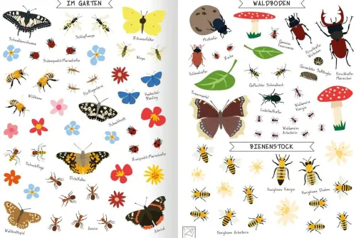 - Lerneffekt: Egal ob Schmetterlinge, Bienen oder Käfer – hier ist für jeden was dabei. Jedes Tier ist auf dem Stickerbogen benannt – ein toller Lerneffekt!