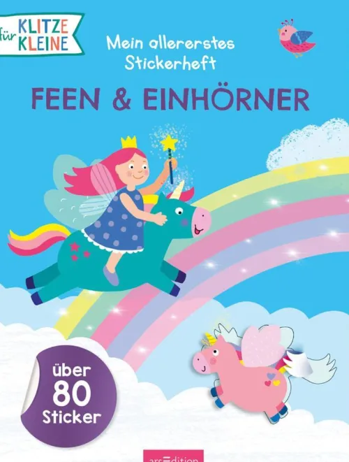 “ Für Klitzekleine“ ist eine speziell für Kleinkinder entwickelte Beschäftigungsreihe. Ob Malen, Stickern oder allererstes Basteln, kleine Hände haben hier großen Spaß! In diesem Stickerbuch gibt es kunterbunte Szenen aus dem Feenreich: Auf die bunt illustrierten Seiten kann man viele schöne Sticker kleben. Wähle aus über 80 Aufklebern und belebe die Szenen mit den unterschiedlichsten Figuren.