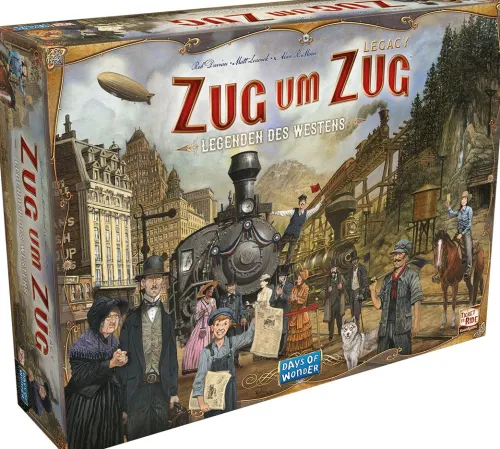 In Zug um Zug Legacy: Legenden des Westens erkunden die Spieler die Welt des beliebten Zug-Spiels und erleben eine kreative Geschichte. Die Spieler begeben sich in der Kampagne voller Abenteuer auf eine Reise durch 12 Partien und führen ihre eigene Eisenbahngesellschaft zu Wohlstand und Reichtum.