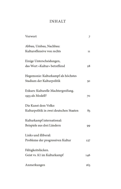 Anhand internationaler Beispiele zeigt Christoph Bartmann wie Rechtspopulisten die Kulturpolitik als Kampfplatz für ihre Ideologie nutzen. Kultur? Museen, Theater und Bibliotheken sind scheinbar nicht die Orte, von denen aus sich die Gesellschaft gestalten lässt. Wer sich in der Politik profilieren will, versucht sich auf anderen Feldern. Rechtspopulistische Parteien erkennen in dieser Gleichgültigkeit ihre Chance. Für sie ist Kultur der Kampfplatz, auf dem sie ihre anti-modernen, völkischen und homophoben Ideen durchsetzen können. In Polen, Österreich und den USA gehört das schon jetzt zum erschreckenden Alltag. Christoph Bartmann schlägt Alarm: Wenn die liberale Mitte diese Gefahr nicht ernst nimmt, hat die Rechte leichtes Spiel. Noch ist es nicht zu spät, Strategien gegen deren Kulturkampf zu entwickeln.