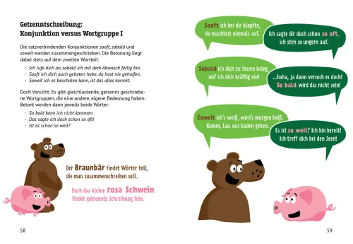 Ob Satzzeichen, Groß- oder Rechtschreibung: Die deutsche Sprache hält viele Fallstricke bereit. Da kann der Opa schon mal ungewollt auf der Speisekarte landen, wenn das Komma fehlt. Und so mancher mag morgens zwar gern liegen bleiben, aber dann wird auch die Arbeit liegenbleiben. Wer sich für die deutsche Sprache begeistert, für den ist dieses Buch genau richtig. Denn hier lässt sich die eine oder andere Regel auf unterhaltsame Weise neu entdecken. Dank amüsanter Illustrationen und origineller Gedichte fällt das Einprägen nicht schwer. Am besten das Buch einfach irgendwo aufblättern, lesen und schmunzeln!