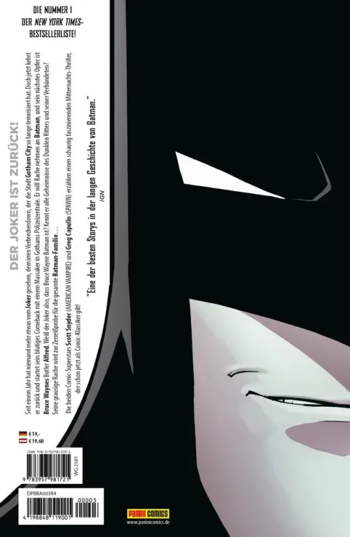 Seit einem Jahr hat niemand mehr etwas vom Joker gesehen, dem irren Verbrecherclown, der die Stadt Gotham City so lange terrorisiert hat. Doch jetzt kehrt er zurück und startet sein blutiges Comeback mit einem Massaker in Gothams Polizeizentrale. Er will Rache nehmen an Batman, und sein nächstes Opfer ist Bruce Waynes Butler Alfred. Weiß der Joker also, dass Bruce Wayne Batman ist? Kennt er alle Geheimnisse des Dunklen Ritters und seiner Verbündeten?