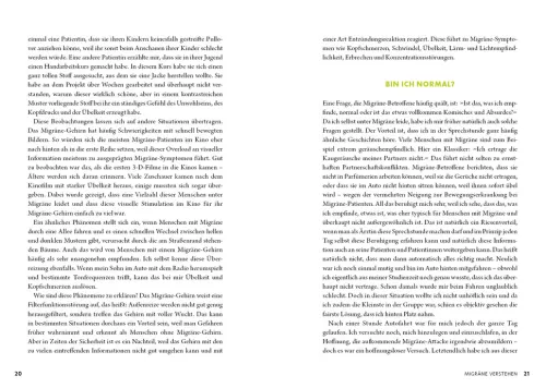 Mit zahlreichen Fallbeispielen aus der Migräne-Ambulanz, praxisnahen Empfehlungen und neuesten wissenschaftlichen Erkenntnissen zeigt sie Tipps für Betroffene, wie man Migräne lindern und den Alltag selbstbestimmter gestalten kann. Ein Buch, das Wissen vermittelt und Zuversicht schenken möchte für ein Leben, das nicht von Migräne bestimmt wird.