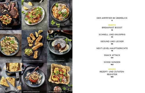 Ob Knuspergranola, Brioche-French-Toast, Tandoori-Lachs im Strudelteig, Riesenrösti mit Raclette-Käse oder die heiß geliebten Parmesan-Pommes diese rund 80 Rezepte sind mehr als nur Alltagsküche: Sie zeigen, wie vielseitig der Airfryer sein kann, wenn man weiß, was man damit macht.