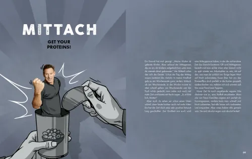 Auf Fleisch, Käse, Milch und Co. verzichten? Wirklich? Ralf Moeller hat sich mit Blick auf Gesundheit, Umwelt- und Tierschutz für diese Reise entschieden und weiß: Du fällst nicht vom Fleisch und kannst nur gewinnen. Ich habe mich langsam herangetastet. Das Tolle ist: Man merkt schon nach wenigen Wochen einen Unterschied. Zum Beispiel wurde mein Cholesterinhaushalt besser. Statt massenweise tierisches Eiweiß kommen bei dem erfolgreichen Schauspieler und Genussmenschen Gerichte auf vorwiegend pflanzlicher Basis auf den Tisch. Frisches Gemüse, Obst, Hülsenfrüchte, würziger Tofu, Soja, knackige Salate, Pflanzenöle und Nüsse mit hohem Anteil guter Fette, Sprossen, Samen, Kräuter und vollwertiges Getreide. Inspiration findet Mr. Universum bei Vegankoch Timo Franke. Es muss halt auch schmecken und Timos vegane Rezepte sind einfach der Hammer.