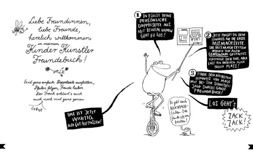 Das ultimativ schönste, kreativste Kinder Künstler Freundebuch, in dem sich alle Freundinnen und Freunde kreativ verewigen können. Für immer und ewig. Es gibt Platz für 39 Freunde, die auf je einer Doppelseite witzige und ernst gemeinte Fragen beantworten können. Mit Schimpfwörtersammlung, Freundschaftssuppe, Mitmach- und Nixmachseiten, die man gemeinsam ausfüllen kann. Freundinnen und Freunde kann man nie genug haben!