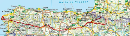 Ebenfalls enthalten sind die sechs Etappen des Aragonesischen Wegs vom französisch-spanischen Pyrenäenpass Somport bis Puente la Reina sowie die Fortsetzung nach Finisterre und Muxía an der galicischen Atlantikküste. Über 900 Kilometer mit unterschiedlichsten Landschaften, kulturellen Highlights und jeder Menge Raum für persönliche Erlebnisse und Erfahrungen.