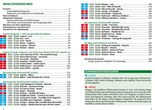 Für die 17. Auflage wurde das Buch vollständig überarbeitet. Das übersichtlichere Etappen-Layout und detaillierte Distanzangaben erleichtern die individuelle Tourenplanung – auch abweichend von den im Wanderführer gewählten Etappen. Mit den Angaben zu rund 500 Herbergen liefert er eine der komplettesten Aufstellungen an Pilgerunterkünften am Weg. Diese werden umfassend vorgestellt und bewertet. Dazu gibt es viele Tipps zur Vorbereitung der Reise und zur Ausrüstung sowie umfangreiche Angaben zur Infrastruktur (wie ärztliche Versorgung, Einkaufsmöglichkeiten oder Banken) am Weg. Daneben stellt der Pilgerführer auch historische Sehenswürdigkeiten vor, beschreibt regionale Eigenheiten, lokale Fiestas und kulinarische Spezialitäten. 150 Farbfotos nehmen einen schon beim Lesen mit auf die Pilgerreise.