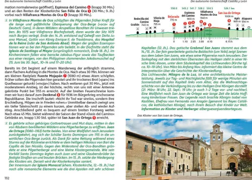 Die einzelnen Etappen verfügen über präzise Wegbeschreibungen, detaillierte Karten mit Angabe der Distanzen zwischen den Herbergen und aussagekräftige Routenprofile. In einem Etappensteckbrief finden sich alle praktischen Informationen zu Herbergen, anderen Unterkünften und Infrastruktur am Weg, übersichtlich aufgelistet im Etappenverlauf und mit Distanzangaben. GPS-Daten stehen zum Download bereit.