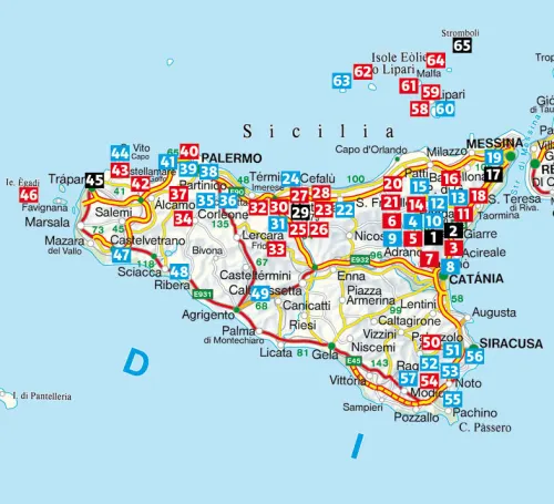 Die Auswahl reicht von leichten Bade-Wanderungen bis zu anspruchsvollen Bergtouren. Die Wanderungen führen durch einsame Naturschutzgebiete, zu antiken Orten, an Strände am türkisenen Meer und auf die Liparischen Inseln vor der Nordküste Siziliens. Zwischen See- und Gebirgsklima findet sich hier ein Wanderrevier für das ganze Jahr.