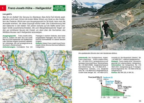 Ein abwechslungsreiches Programm wird auf dem Alpe Adria Trail geboten: Wer das Gletschereis und die Dreitausender der Tauerngruppe sowie die sanften Kuppen der Nockberge hinter sich gelassen hat, den erwartet in Slowenien einer der naturbelassensten Flüsse Mitteleuropas, die Soca. Mit ihrem klaren Türkisblau geleitet sie die Wanderer durch die beeindruckenden Kalkformationen des Triglav-Nationalparks. Schließlich werden die Weinberge Norditaliens durchstreift. Nach rund 41 Etappen und 23. 000 Höhenmetern auf dem Alpe Adria Trail wartet der Sprung in die Fluten der Adria – ein unbeschreibliches Gefühl! Neben den landschaftlichen Schönheiten ist der AlpeAdriaTrail auch ein kulturelles und kulinarisches Erlebnis – der Wanderführer bietet ausführliche Informationen zu allen Sehenswürdigkeiten und viele Tipps zu lohnenden Einkehrmöglichkeiten. Die einzelnen Etappen werden mit exakten Wegbeschreibungen, Kartenausschnitten mit eingezeichnetem Routenverlauf und aussagekräftigen Höhenprofilen präsentiert. Infos zu Verkehrsmitteln und Einkaufsmöglichkeiten vereinfachen die Etappenplanung. GPS-Daten stehen zum Download von der Internetseite des Rother Bergverlags bereit.