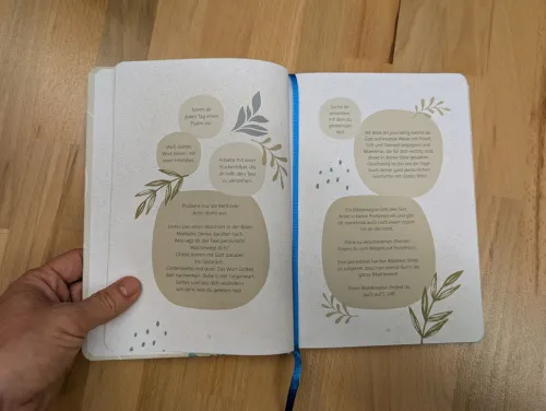 Das Journal für bewusste Zeit mit Gottes Wort. Mit Tipps, Anregungen, Lese-Trackern u. v. m. unterstützt es beim Bibellesen. Gut strukturierte und liebevoll gestaltete Journalseiten lassen Raum, um Erkenntnisse und Gedanken festzuhalten. So wird die Zeit mit der Bibel nicht nur intensiver – ganz nebenbei dokumentiert man die eigene Glaubensreise und behält wichtige Verse und Gedanken in Erinnerung.