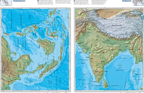 Ein vorgelagerter thematischer Teil beschäftigt sich mit der Erde als Teil des Universums und als Lebensraum. Ein weiterer Abschnitt zeigt eindrückliche Satellitenaufnahmen. Das Länderlexikon liefert aktuelle Daten und Fakten zu allen Staaten unserer Erde. Mit Auflistung und Beschreibung aller aktuellen UNESCO-Welterbestätten und ergänzten Nationalparks in den europäischen Karten.