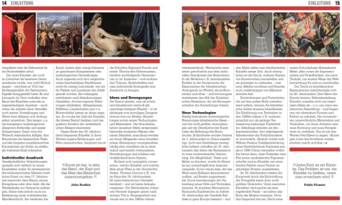 Wie haben die alten Griechen ihr Schönheitsideal in der Kunst umgesetzt? Hat Farbe einen direkten Einfluss auf die Seele? Das Kunst-Buch bietet Antworten auf diese und andere Fragen, indem es Schlüsselmomente, wichtige Motive und Stilrichtungen untersucht. Jedes Kunstwerk wird vor seinem kulturellen Hintergrund betrachtet und die Absichten des Künstlers analysiert.