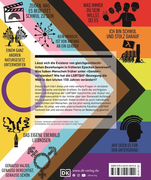 Was haben Menschen früher unter „Gender“ verstanden? Wie hat die LGBTQIA*-Bewegung die Welt in den letzten 150 Jahren verändert? Dieses innovative Nachschlagewerk beantwortet Fragen über die Geschichte der LGBTQIA*-Kultur mit informativen Diagrammen und originellen Grafiken – klar und leicht verständlich. Von Gender und Sexualität im antiken Griechenland bis hin zum heutigen LGBTQIA*-Aktivismus in Asien. Der neue Titel aus der DK Erfolgsreihe Big Ideas!