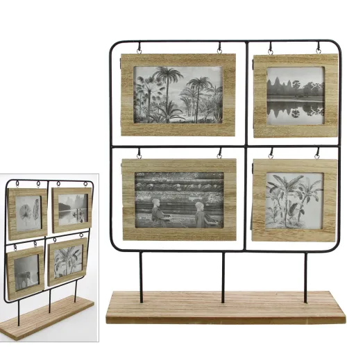 Bilderrahmen aus Metall mit Holzrahmen mittelbeige für 4 bzw. 8 Bilder beidseitig verwendbar, für Bilderformate 9 x 9 und 10 x 15 cm, mit Standfuß