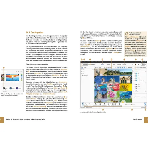 Die Autoren zeigen Ihnen, wie Sie mithilfe von Organizer und Fotoeditor Ihren Workflow optimieren. Schritt für Schritt erfahren Sie, wie Sie Farben ganz einfach ändern, die Belichtung anpassen, Objekte entfernen, automatische Korrekturen vornehmen, Bilder retuschieren sowie kombinieren und mit nur einem Klick beeindruckende Effekte erzielen. Anschauliche Anleitungen zeigen, wie Sie mit Masken und Ebenen arbeiten sowie die KI gezielt einsetzen. Erstellen Sie Composings und Collagen und präsentieren Sie Ihre Ergebnisse eindrucksvoll. Mit praktischen Tipps rund um Tastaturkürzel, Anordnung der Bedienfelder und vorgefertigte Aktionen wird die Bearbeitung Ihrer Fotos zum Kinderspiel. Viel Spaß beim Ausprobieren!