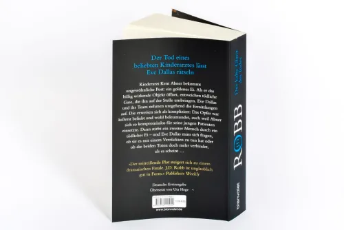 Kinderarzt Kent Abner bekommt ungewöhnliche Post: ein goldenes Ei. Als er das billig wirkende Objekt öffnet, entweichen tödliche Gase, die ihn auf der Stelle umbringen. Eve Dallas und ihr Team nehmen umgehend die Ermittlungen auf. Die erweisen sich als kompliziert: Das Opfer war äußerst beliebt und wohl beleumundet, auch weil er sich so kompromisslos für seine jungen Patienten einsetzte. Dann stirbt ein zweiter Mensch durch ein tödliches Ei – und Eve Dallas muss sich fragen, ob sie es mit einem Verrückten zu tun hat oder ob die beiden Toten doch mehr verbindet, als es scheint . . .
