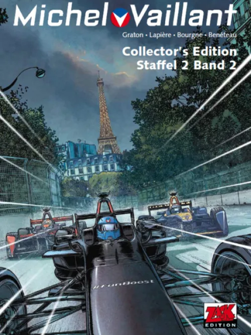 Im zweiten Band der Gesamtausgabe kommen nicht nur die Alben Kollaps, Wiedergeburt und Rebellion zum Abdruck, sondern auch die beiden bisher in Deutschland unveröffentlichten zweiseitigen Werbecomics Les Dunlop Sport Classic à l’épreuvre du Mans Classic und Eprix, die 2017 veröffentlicht wurden.