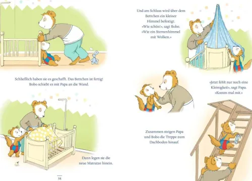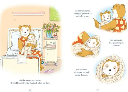 Bald bekommt Bobo ein Geschwisterchen! Bevor es so weit ist, muss Bobo aber noch einiges erledigen: zum Beispiel mit Mama zur Ärztin gehen oder mit Papa das neue Babybett aufbauen – und es gleich mal ausprobieren! Als Mama und Papa ins Krankenhaus fahren, wartet Opa mit Bobo, bis sie das Geschwisterchen endlich besuchen dürfen. Noch schöner aber wird es, als Mama und die kleine Bibi endlich nach Hause kommen.