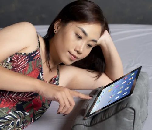 *Passend für TABLETS und E-Book-Reader! Filme oder Games auf dem Tablet ansehen? Auch hier ist die BookCouch ein praktisches Gadget. Auf der Rückseite befindet sich sogar eine Tasche für Ladekabel oder Kopfhörer.