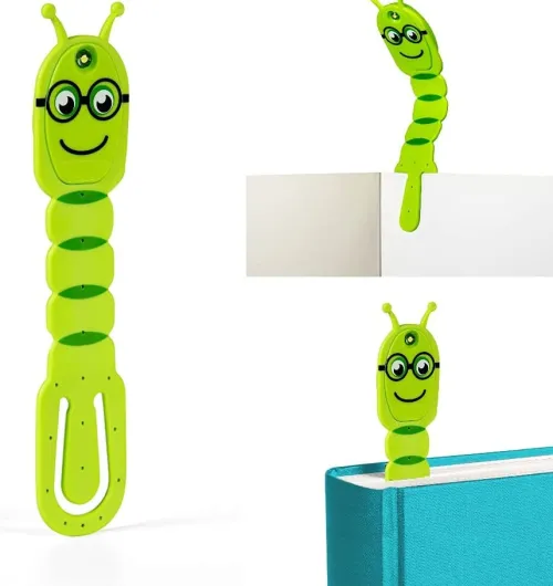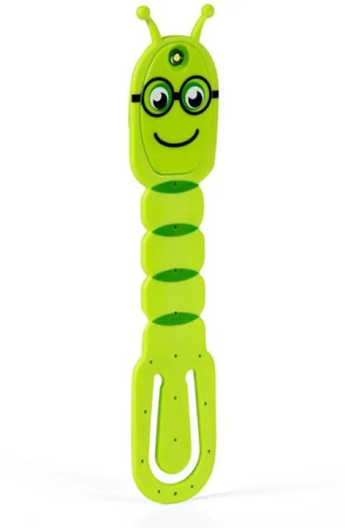 Bookchair Vertrieb Lesen & Geschichten-Flexilight Pals Leselicht (Bookworm) | grün | 2 in 1 Leselampe & Lesezeichen | LED Leselicht | Geschenk für Leser, Buchliebhaber | Deutsche Ausgabe