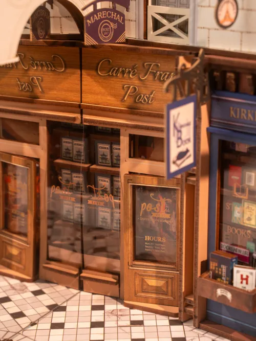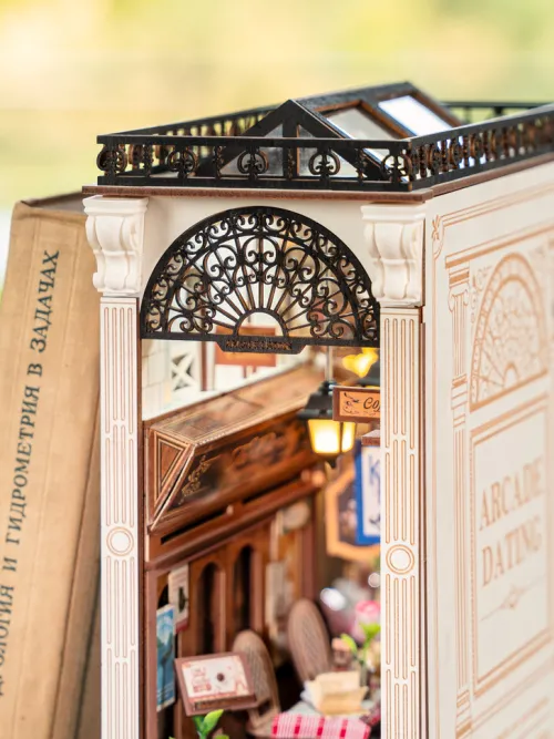 Kann Liebe in einer verträumten urbanen Umgebung gedeihen? Werfen Sie einen Blick in die Arcade Dating-Bücherecke und finden Sie es heraus. Diese bezaubernde Szenerie liegt in einem ruhigen Korridor, der einer malerischen europäischen Straße nachempfunden ist, und schafft die perfekte Stimmung für erste Verabredungen und herzliche Gespräche. Warmes, goldenes Licht von Hängelaternen taucht den Raum in ein gemütliches Licht und hebt einen malerischen Tisch hervor, der zwischen einem charmanten Café und einer einladenden Buchhandlung liegt. Das Café strahlt mit seinen rustikalen Holzdetails Wärme aus, während die mit Vintage-Schildern, Briefmarken und dekorativen Büchern geschmückte Fassade der Buchhandlung einen Einblick in eine Welt endloser Geschichten bietet. Oben überblickt ein hoher Balkon die Szenerie und lässt Sie sich eine moderne Julia hinter seinen Holzbalustern vorstellen, die darauf wartet, dass unten ihr Romeo erscheint. Sie sind dran. Bauen Sie die Arcade Dating-Bücherecke und schreiben Sie mit Ihrer Handwerkskunst Ihre eigene Liebesgeschichte.