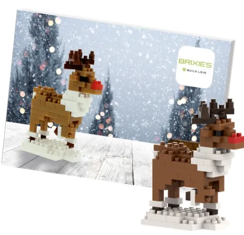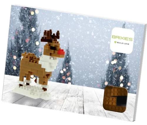 Die Postkarte „BRIXIES Rentier“ beinhaltet einen Konstruktionsbausatz aus insgesamt 89 Klemmbausteinen und ist zusammengebaut 4, 5 cm lang, 1, 5 cm breit und 6, 8 cm hoch. Die Baustein-Sets von BRIXIES sind ab 8 Jahren geeignet. Die Bausteine bestehen aus hochwertigem
