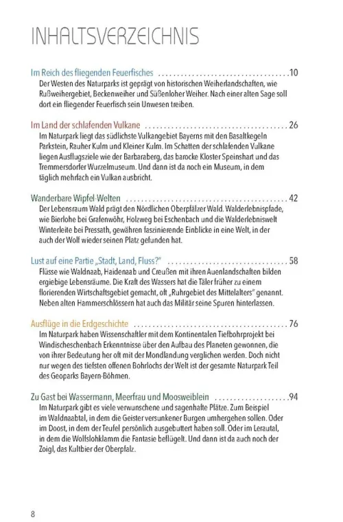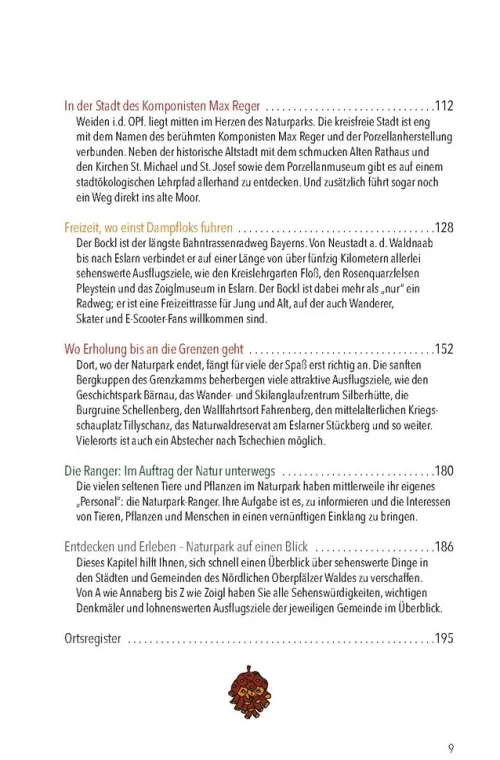 Kaum ein anderer Naturpark in Bayern ist so reich strukturiert wie der Nördliche Oberpfälzer Wald. Stille Weiherlandschaften wechseln mit ausgedehnten Forstgebieten, bizarre Felslandschaften mit wildromantischen Bachtälern. Und immer wieder grüßen Burgruinen und Kirchen von den sanften Kuppen und Hügeln ins weite Land. Eine davon – die Burgruine Flossenbürg – ist auch das Wahrzeichen dieser ungewöhnlichen Landschaft. Und dann sind da natürlich noch die vielen barocken Zwiebeln von Kirchen, die idyllisch gelegene Dörfer überragen. Der zwischen dem Fränkischen Jura im Westen, dem Böhmerwald im Osten, dem Fichtelgebirge im Norden und dem Bayerischen Wald im Süden gelegene Oberpfälzer Wald ist mit seinen sanften Hügeln noch immer ein Geheimtipp. Dabei gibt es im Naturpark Nördlicher Oberpfälzer Wald viele Superlative – wie das tiefste Loch der Erde, den schönsten Basaltkegel Europas, den längsten Bahntrassenradweg Bayerns und die prächtigste Burgruine der Oberpfalz. Und dann sind da natürlich noch verwunschene Plätze wie die Wolfslohklamm im Lerautal bei Leuchtenberg, das „Teufelsbutterfass“ im Doost bei Floß oder die versunkene Stadt Mirga im Oberpfälzer Hügelland zwischen Speinshart und Pressath. Die aktualisierte, überarbeitete und reich illustrierte Neuauflage des offiziellen Naturpark- und Wanderführers für den Nördlichen Oberpfälzer Wald ist ein spannendes Lesebuch und gleichzeitig ein nützlicher Begleiter bei der Erkundung. Autor Wolfgang Benkhardt ist in diesem Gebiet aufgewachsen und hat die Entstehung und Entwicklung des Naturparks jahrzehntelang als Zeitungsredakteur journalistisch begleitet. Er lotst mit dem Buch, das in jede Westentasche passt, zu den schönsten Ausflugszielen, informiert über Artenschutz und Landschaftspflege, erzählt die Geschichte der Feuerberge, berichtet von der Rückkehr des Wolfes, verrät, was hinter dem Zoiglkult steckt und beleuchtet die Arbeit der Ranger. Und natürlich ist auch „Butzlkouh“, das Maskottchen des Naturparks, mit von der Partie.