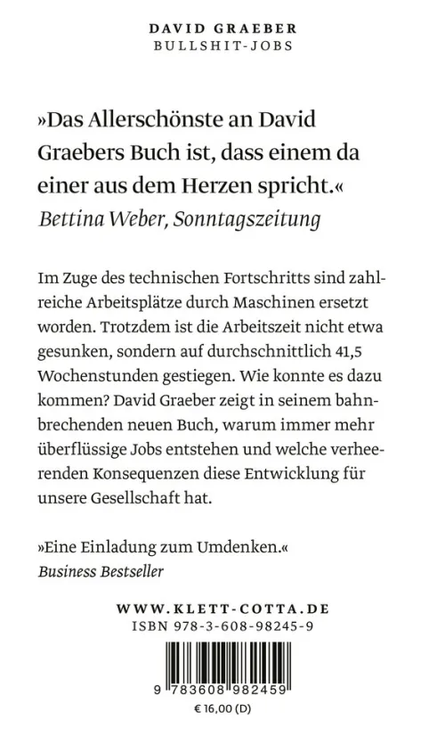 Im Jahr 1930 prophezeite der britische Ökonom John Maynard Keynes, dass durch den technischen Fortschritt heute niemand mehr als 15 Stunden pro Woche arbeiten müsse. Die Gegenwart sieht anders aus: Immer mehr überflüssige Jobs entstehen, Freizeit und Kreativität haben keinen Raum – und das, obwohl die Wirtschaft immer produktiver wird. Wie konnte es dazu kommen?
