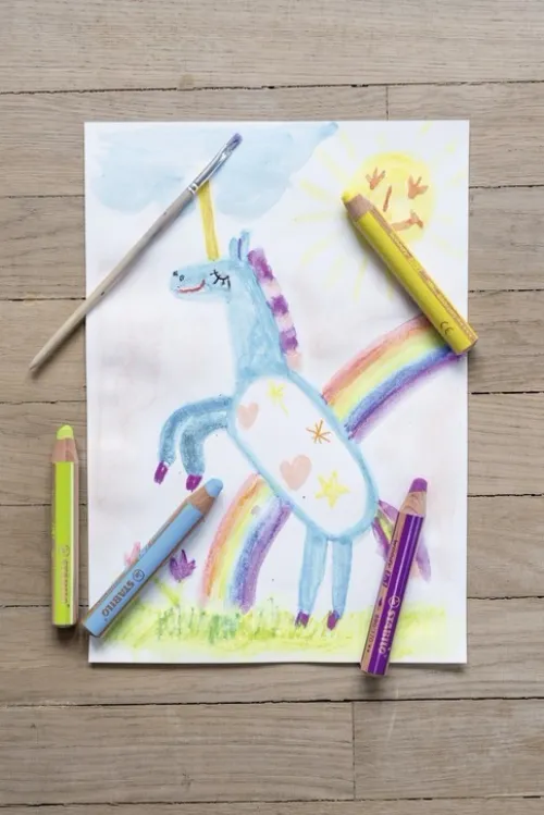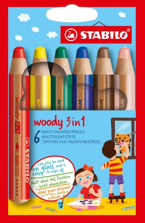Hergestellt aus 100 % PEFC-zertifiziertem Holz. XXL-Mine: 1 STABILO woody = 8 Standard-Buntstifte. Perfekt für große Flächen und vielfältige Maltechniken. Wegen seiner dicken Form ideal für Kinderhände: der Stift ist gut zu