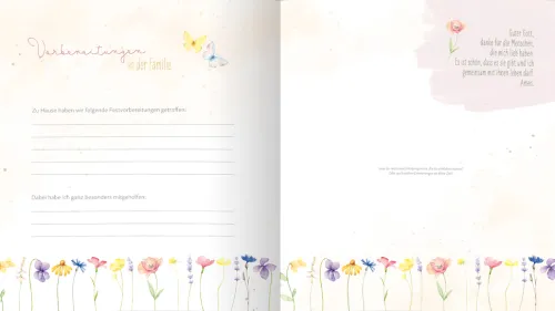 Auf 48 liebevoll gestalteten Seiten gibt es reichlich Platz für persönliche Eintragungen und die schönsten Fotos – von der Vorbereitungszeit und dem feierlichen Gottesdienst bis hin zur anschließenden Feier mit Familie und Freunden.