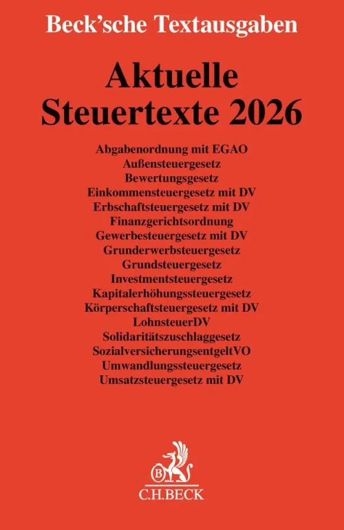 Die kartonierte Textausgabe enthält alle wichtigen Steuergesetze mit den entsprechenden Durchführungsverordnungen. Grund- und Splittingtabelle sowie ein ausführliches Stichwortregister ergänzen die Gesetzestexte.