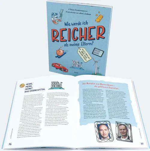Alles rund ums Geld – ein originelles, hilfreiches und unterhaltsames Sachbuch für Mädchen und Jungen. Mit Investoren-Porträts von Jakob Fugger bis Elon MuskReichtum ist planbar – von den ersten 100 Euro bis zur ersten eigenen Million! Die erfolgreiche (Taschen-)Geldvermehrung ist kein Hexenwerk, wenn man weiß, was man tun und was man besser lassen sollte. Wie reich wäre Jesus heute, wenn seine Eltern am Tag seiner Geburt einen Cent als Startkapital angelegt hätten? Was ist der Unterschied zwischen einem Bullenmarkt und dem Markt für Bullshit? Und warum sollte jeder sein erstes selbstverdientes Geld so in Ehren halten wie Onkel Dagobert seinen Glückszehner? Dieses Buch ist ein praktischer Werkzeugkasten für alle, die die Welt jenseits von Girokonto und Sparbuch erkunden wollen – und ein Wertekompass: Denn erfolgreich ist nur, wer neben seinem finanziellen auch seinen moralischen und emotionalen Reichtum im Blick behält.